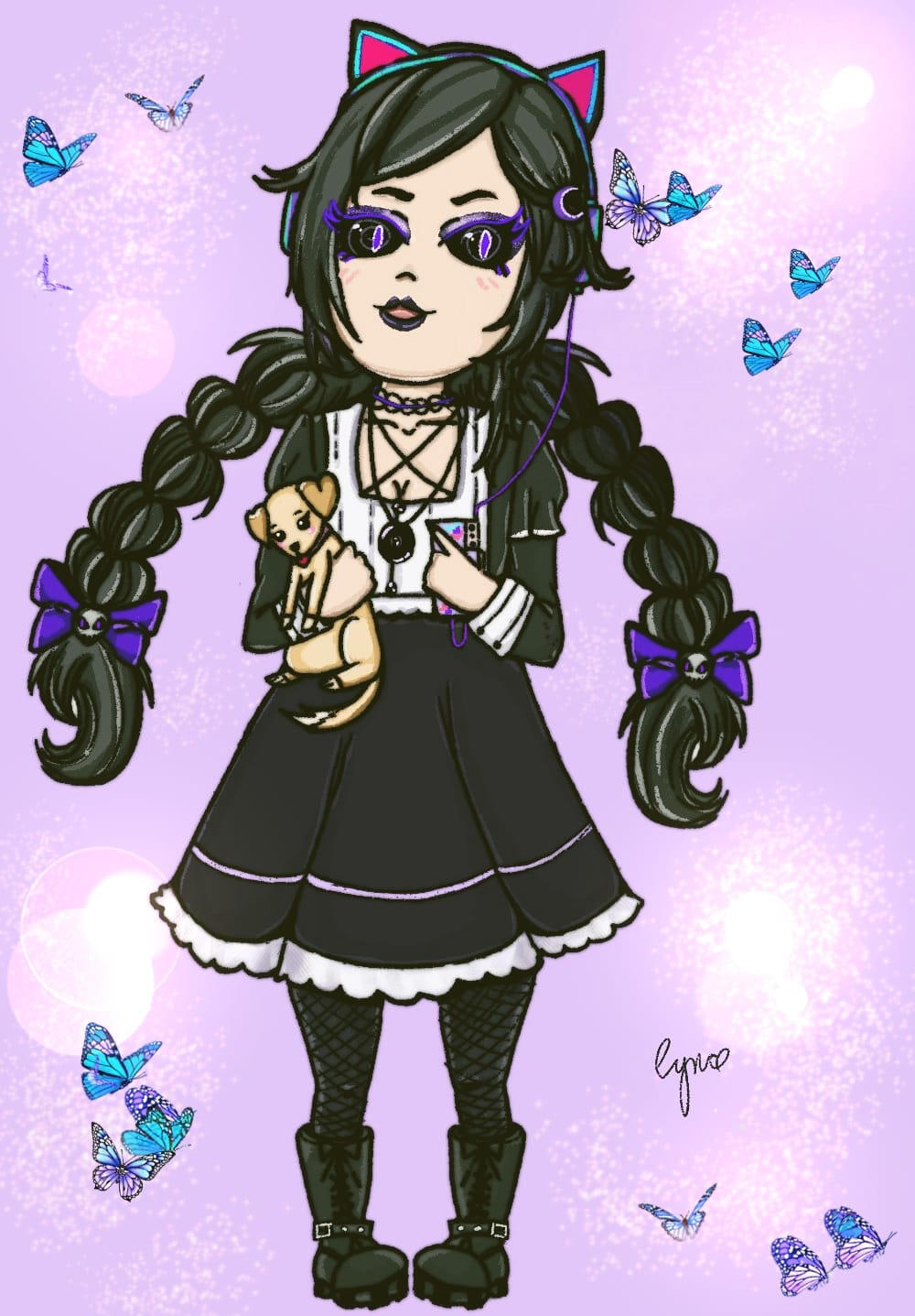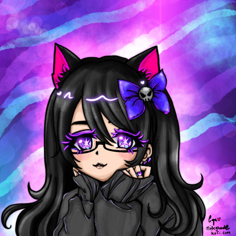 -Eyes: Purple! Either with starburst, or white slit. Either or is fine! Starburst = Astrofairy Cyn, White Slit = Ghoulish Cyn.